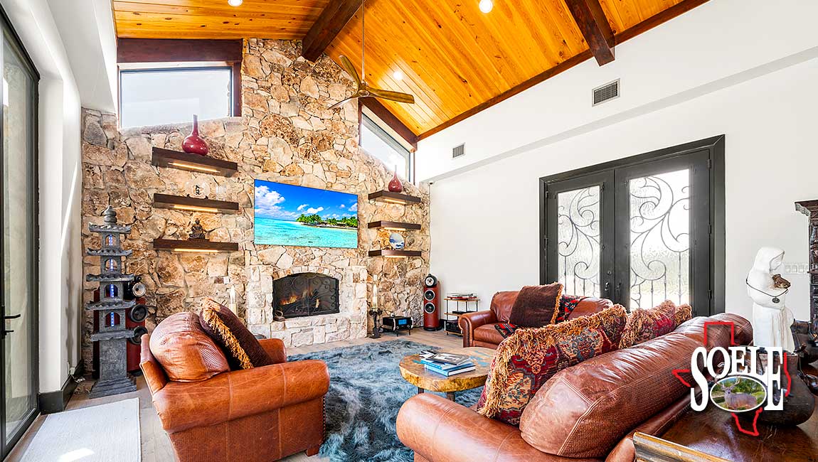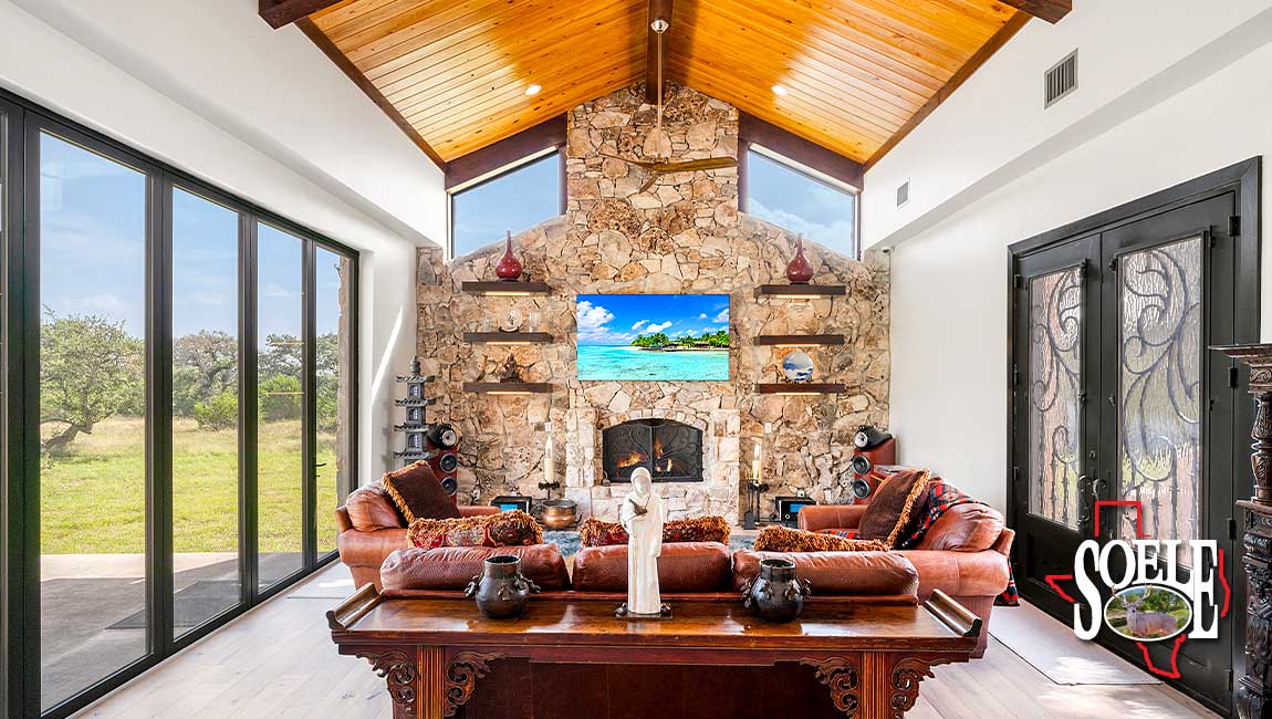 A grand majestic electric rock entry access with security camera/speaker followed by a meandering drive along an oak tree lined concrete driveway leads to your majestic two-story rock hill-country ranch home with 3 bedrooms, 3 baths, a stunning gourmet kitchen with granite countertops, 3 fireplaces, and grand entertaining room!
