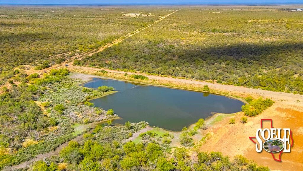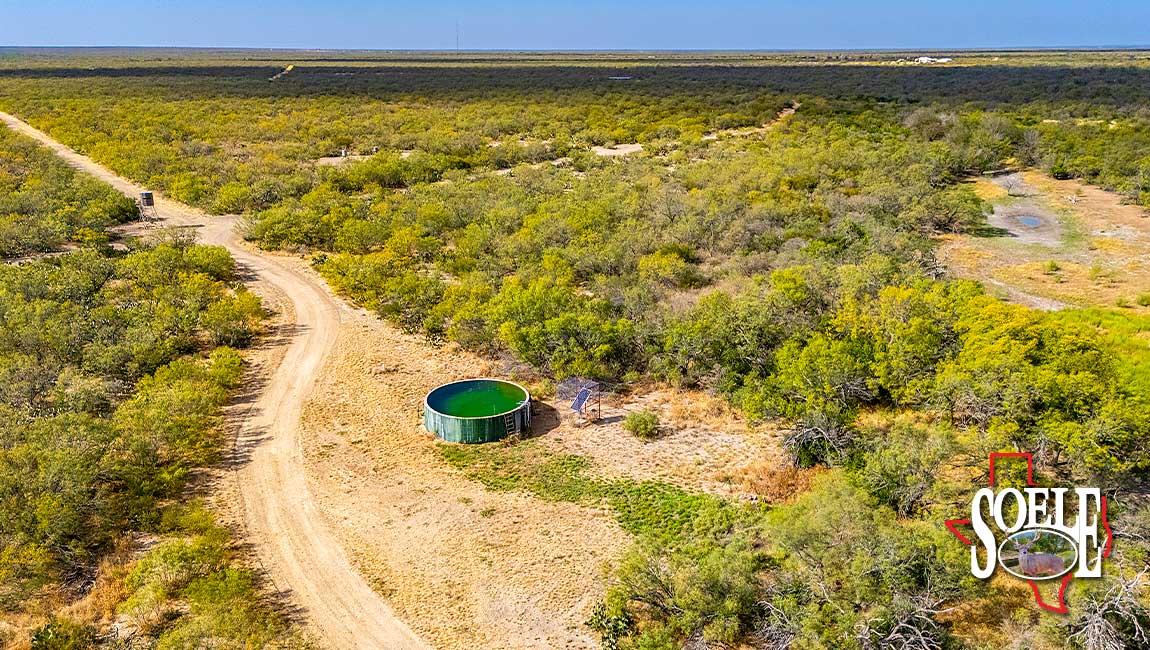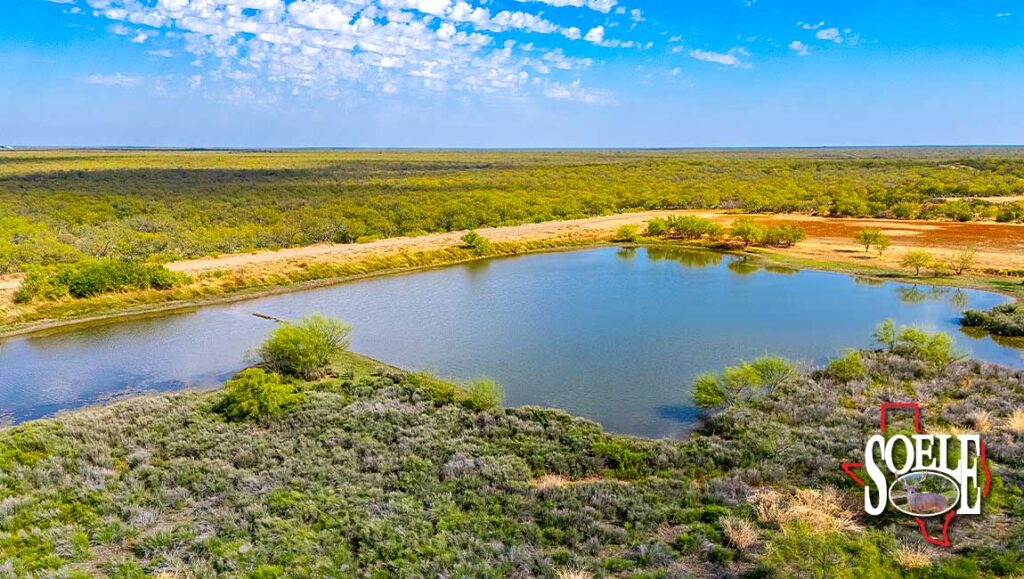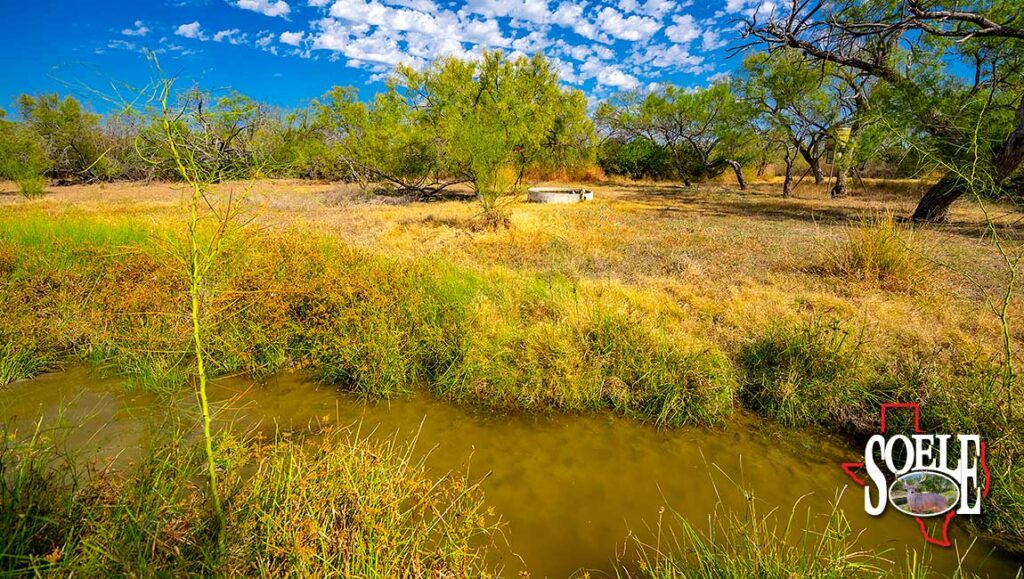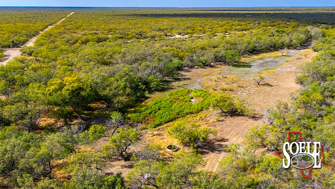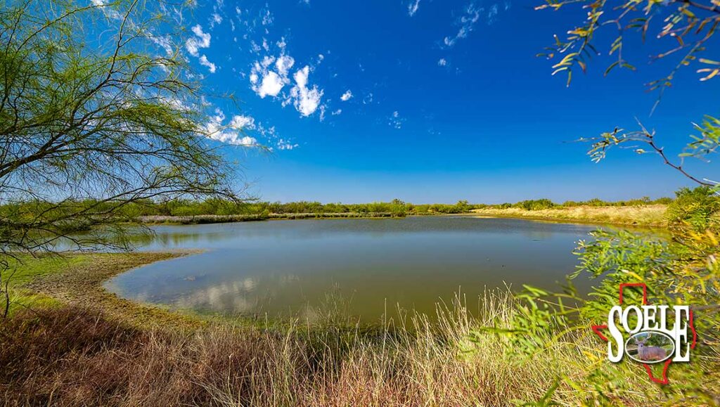 Water is everywhere. Six wells. Piped water feeding nine troughs. One large lake, two additional ponds, and frontage on both sides of two creeks. The land rolls with classic South Texas contour, tied together by ranch roads that feel more Rolls-Royce than ranch truck—quiet, solid, and built to last.