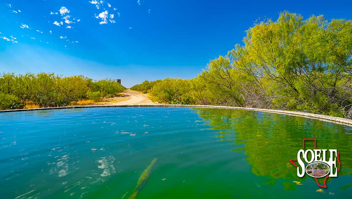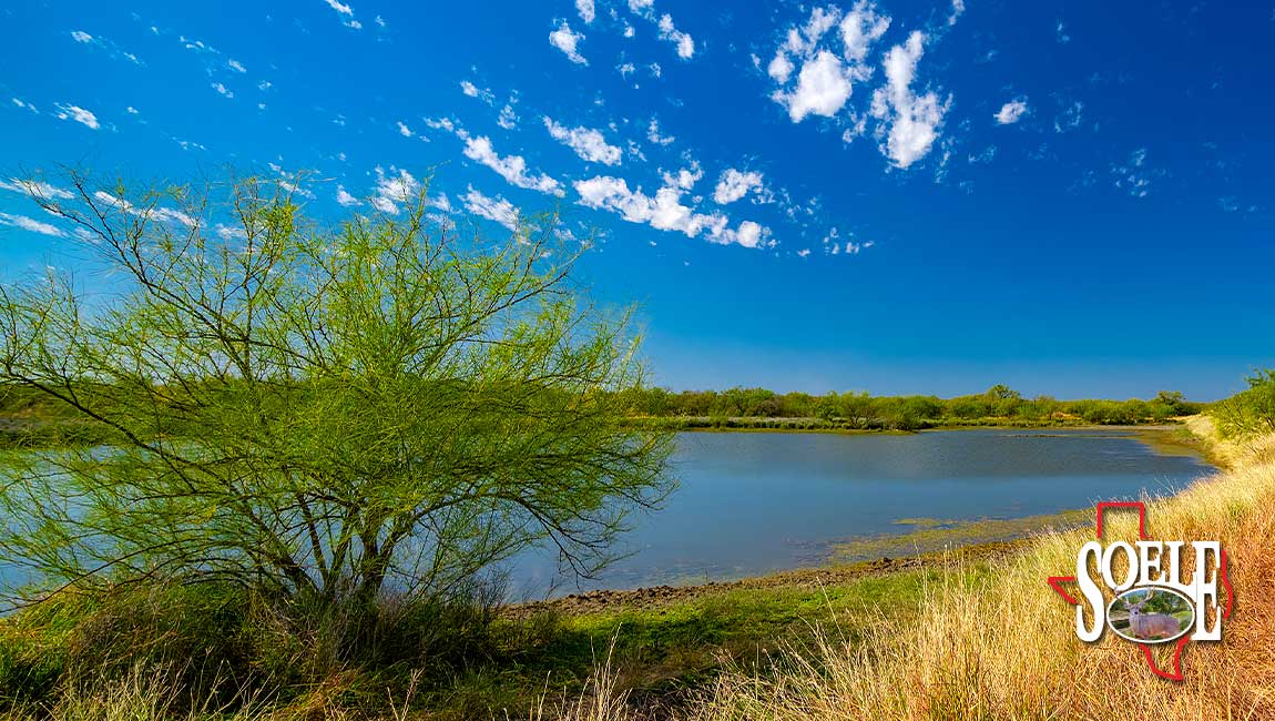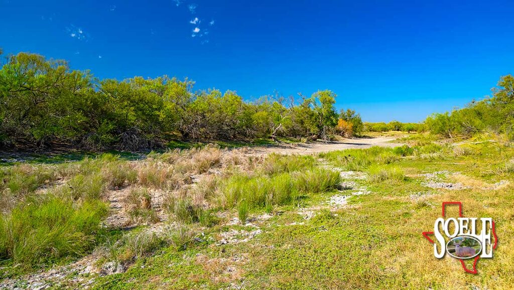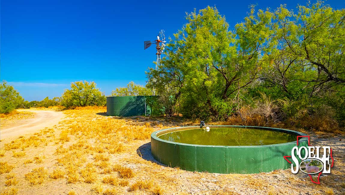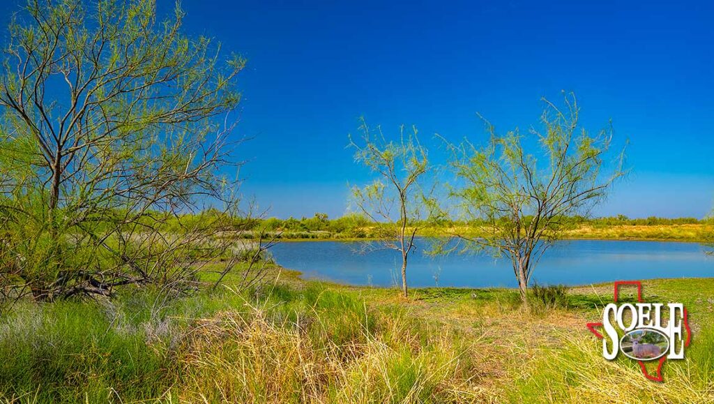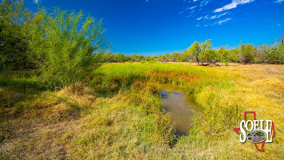 Water is everywhere. Six wells. Piped water feeding nine troughs. One large lake, two additional ponds, and frontage on both sides of two creeks. The land rolls with classic South Texas contour, tied together by ranch roads that feel more Rolls-Royce than ranch truck—quiet, solid, and built to last.